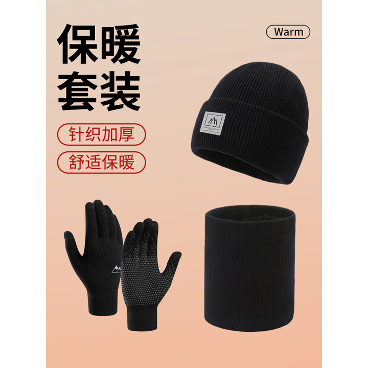 帽子冬季男士骑行面罩保暖围脖针织手套三件套装加绒冷帽毛线帽女