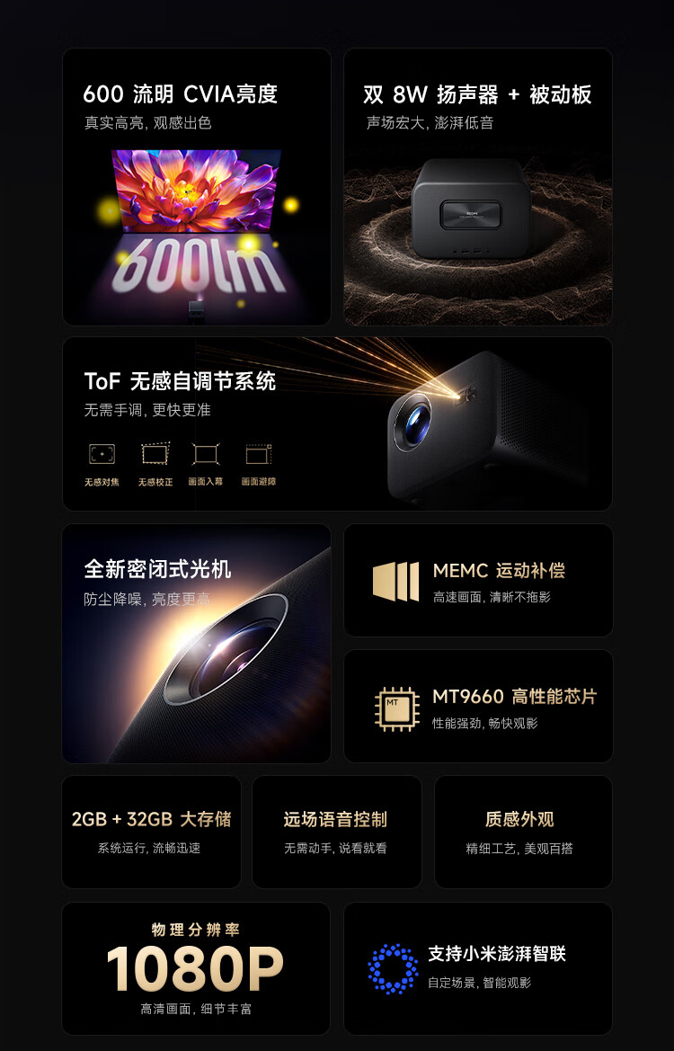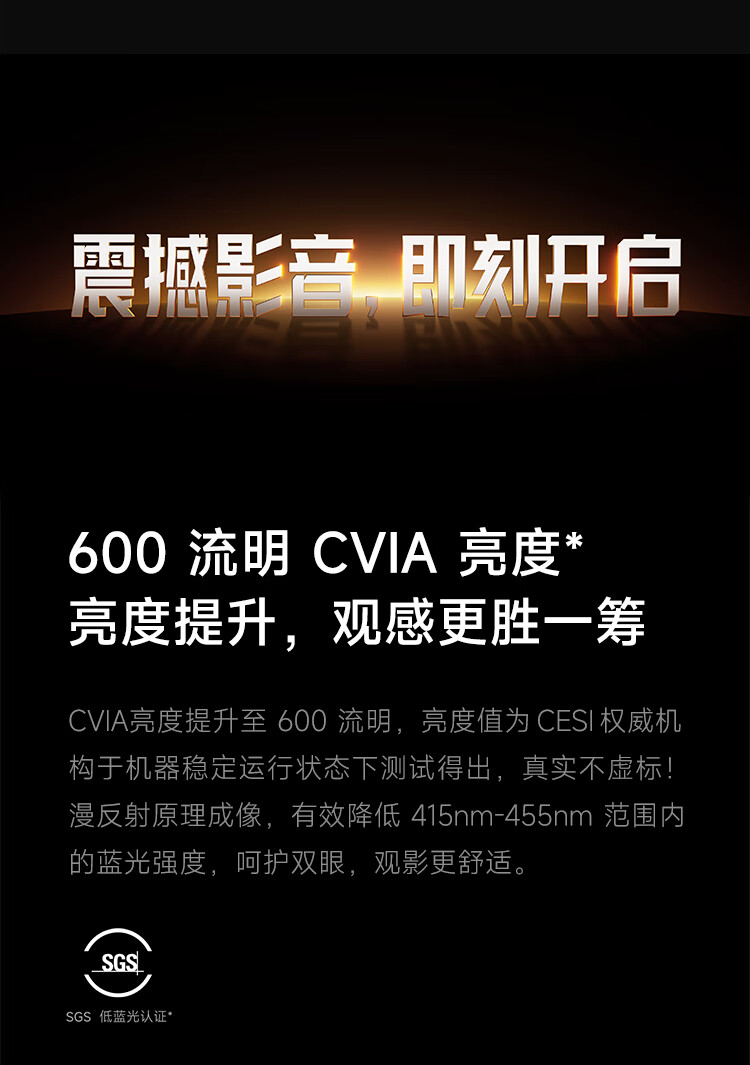 商品名称:小米REDMI 投影仪4 Pro 投影仪 智能家庭影院 600流明CVIA亮度 双8W扬声器+低音被动板MEMC动态补偿