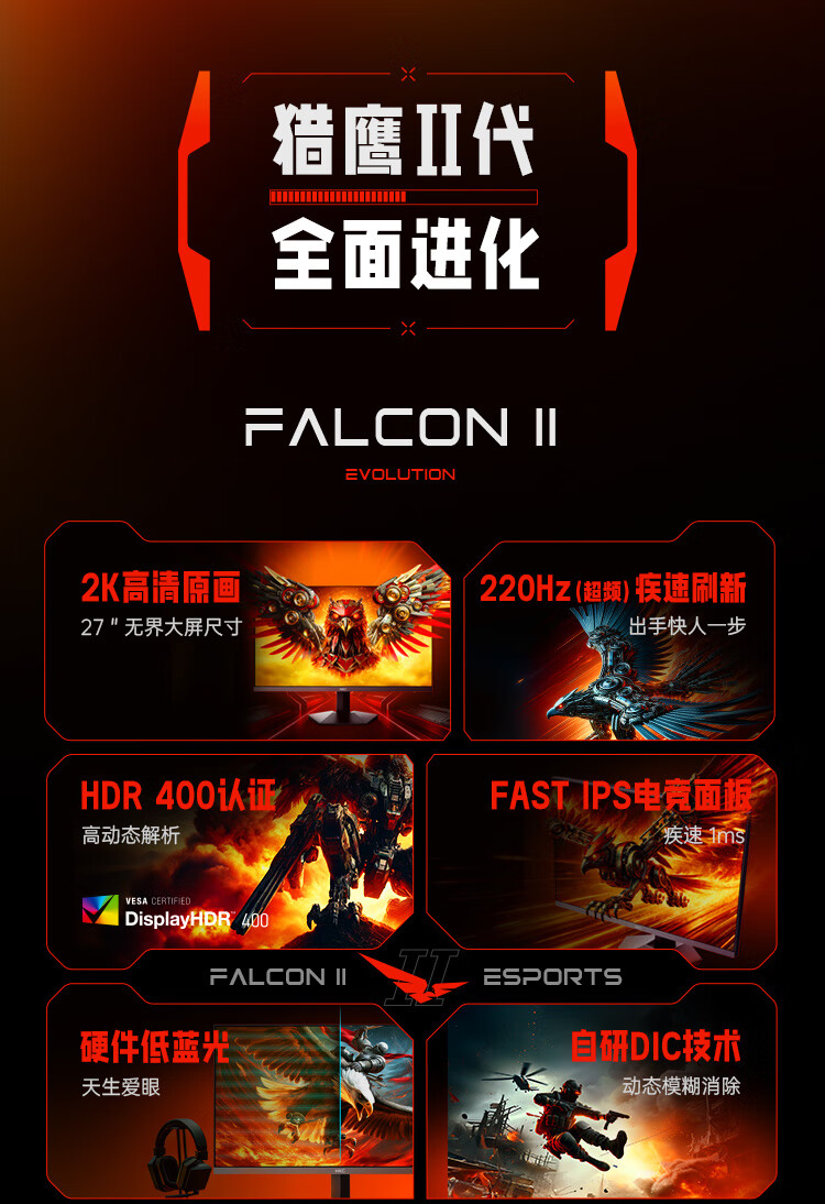 商品名称:HKC 27英寸2K 220Hz高刷FastIPS快速液晶HDR400电竞1ms硬件低蓝光PS5三角洲游戏电脑显示器G27H2Max